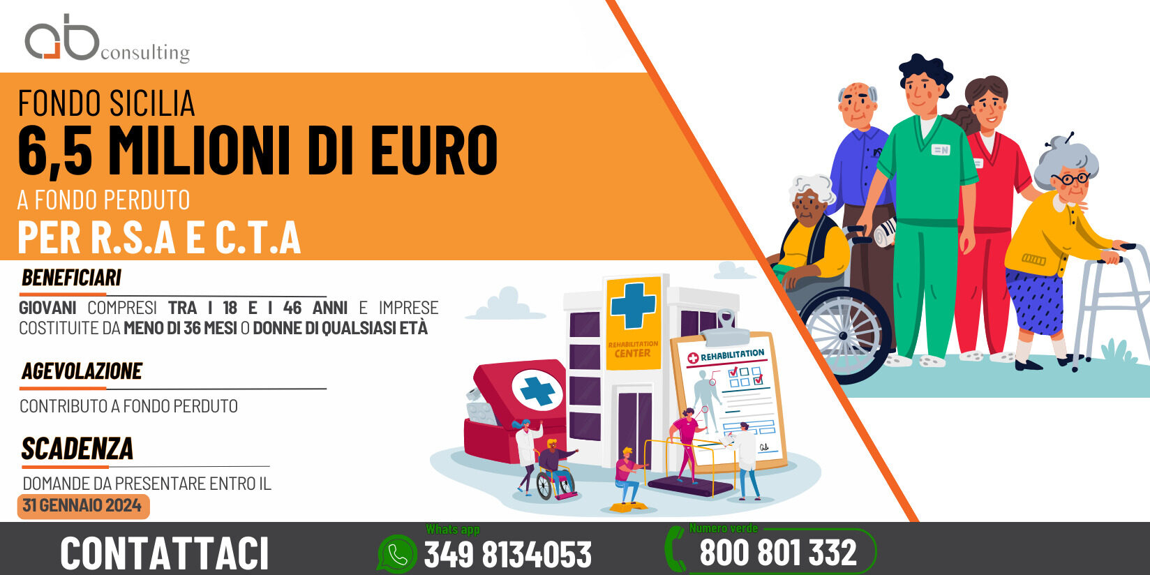 Fondo Sicilia ha lanciato un nuovo bando a fondo perduto per sostenere le Residenze Sanitarie Assistite (RSA) e le Comunitร terapeutiche assistite (CTA) dell’isola.